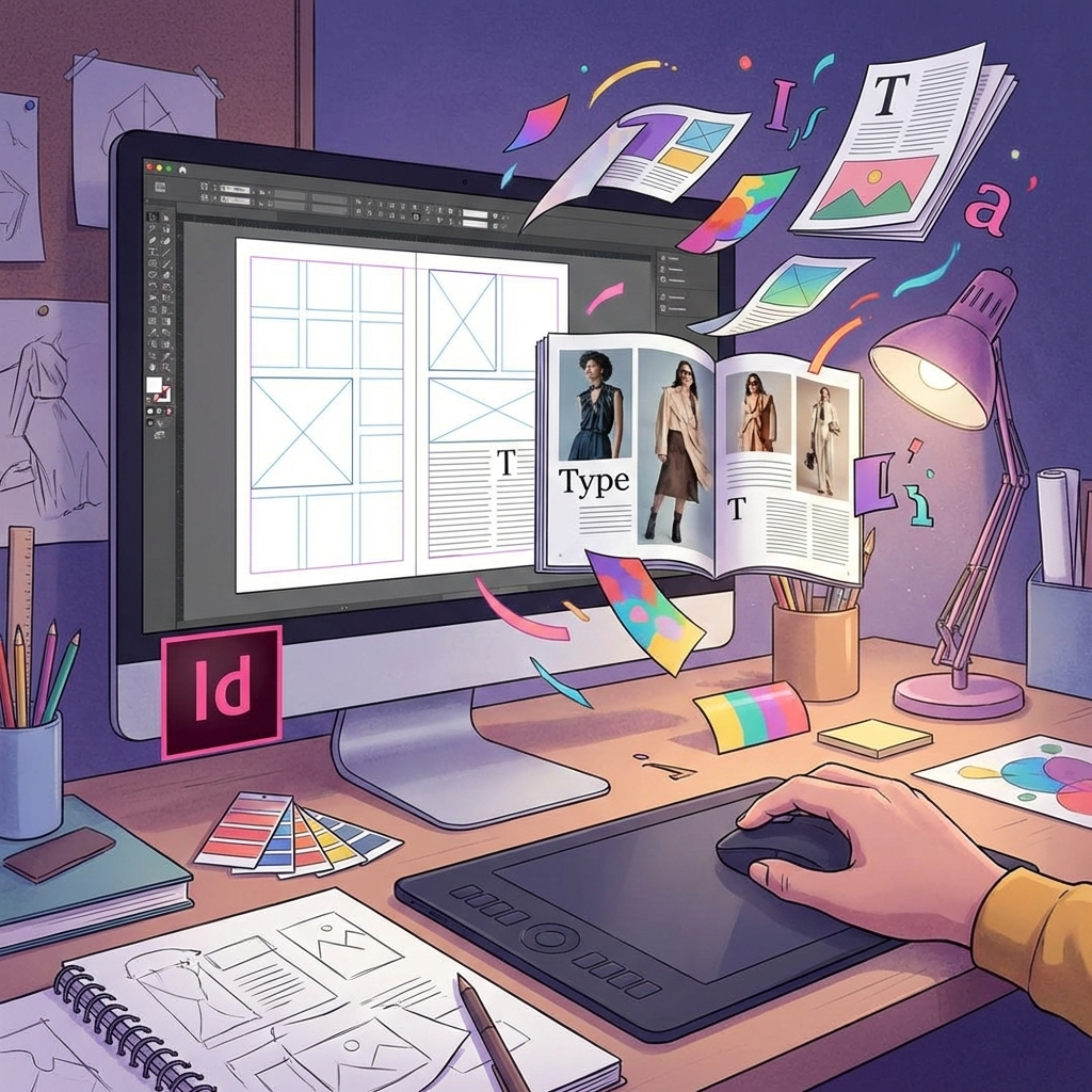 Automação e Finalização: Uso de páginas mestre para padronização, gerenciamento de links, numeração automática de páginas e os processos corretos de exportação para diversos formatos profissionais.